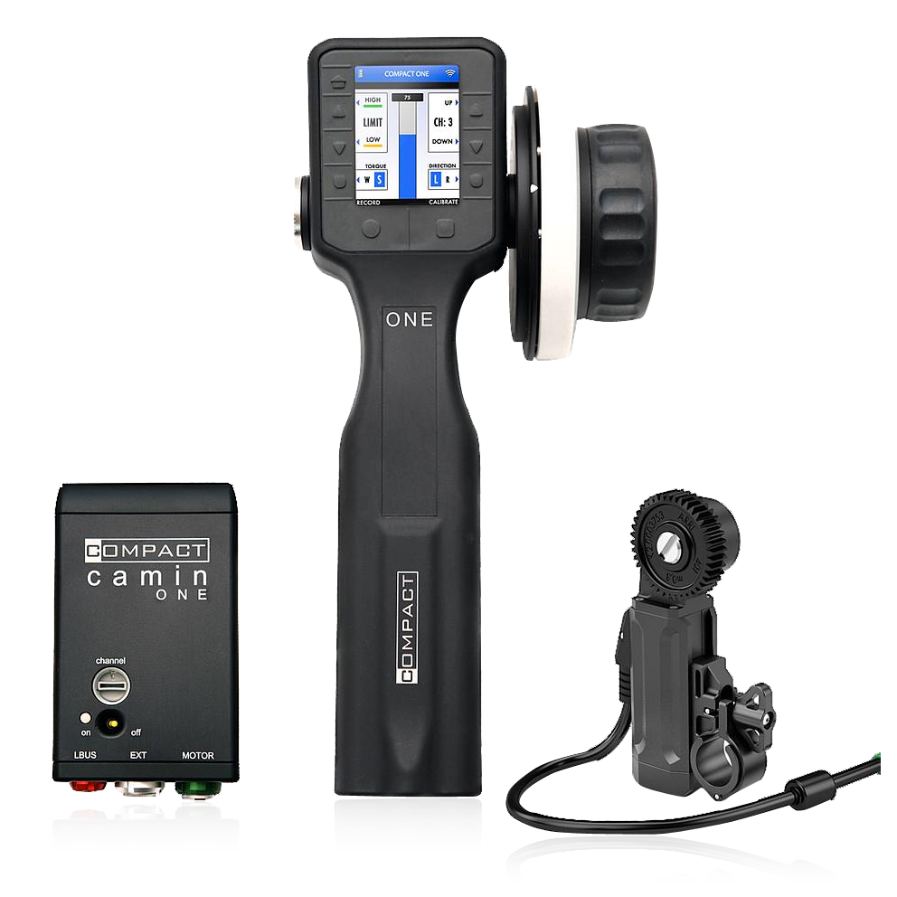 每個compact ONE套裝都會提供一個CLM-4或CLM-5馬達。裝載總重量小於600g(含CLM-4馬達),是一款適合任何穩定系統的理想系統。還可選擇額外的啟閉纜線用於ARRI、Blackmagic、Canon、RED和Sony攝影機。
